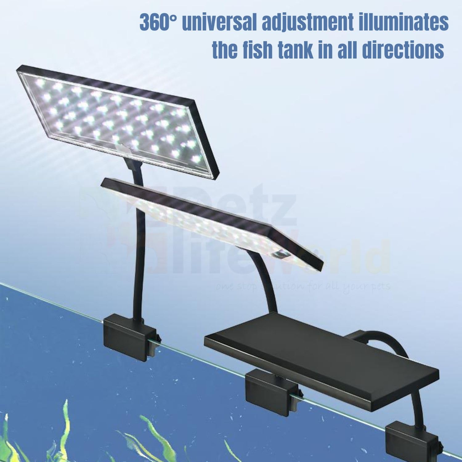 - š Plug & Play, Long Life: Energy-efficient and easy to install, this LED light has a long lifespan and low heat emission, making it safe and durable for long-term use. Technical Parameters : Power Consumption: 13W, Color Temperature: 10,000K, Dimensions: 18.5Ć7.5 cm, Suitable Tank Size: 30ā50 cm in length, Glass Thickness Compatibility: Up to 15 mm, Mounting Type: Clip-on adjustable bracket, Adjustability: 180° rotation, Waterproof Rating: IP68